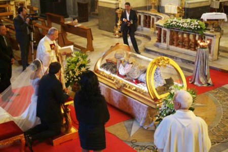 I fully understand that decomposed corpses inside “Churches” might give children nightmares. But still it is worth noticing that Roman Catholic priests dress us dolls, or wax figures for their feasts.