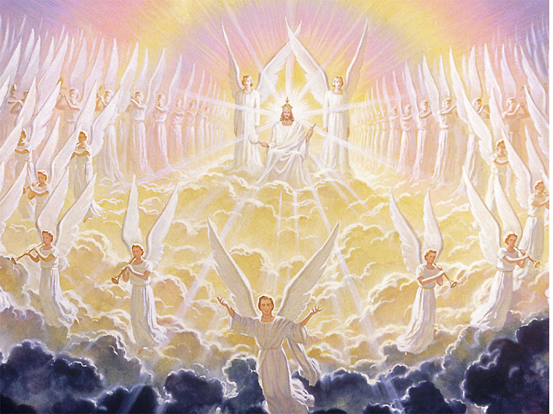 The streams cease to flow. Dark, heavy clouds come up and clash against each other. In the midst of the angry heavens is one clear space of indescribable glory, whence comes the voice of God like the sound of many waters, saying: