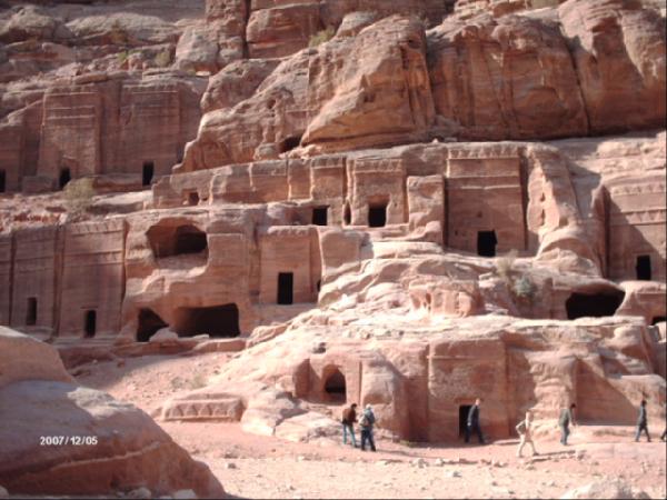 Besides many other large structures, there is a huge amphitheater cut entirely out of the rocks, and capable of seating more than three thousand persons. In the accompanying cut are seen some of the ruins with which the valley is strewn. The only edifice not excavated in the mountain, that has survived the ravages of time, is a palace, called by the Arabs, the house of Pharaoh. The most numerous remains at the present time are the tombs excavated in the faces of the cliffs, and sides of the ravines. In the picture, some of these appear on the left. Petra was the chief city in that region, and for many years was a leading commercial center. For a long time, the Edomites, descendants of Esau, dwelt here. They were the ones who refused to let the children of Israel pass through their country when journeying from Egypt to Canaan. Afterward it was possessed by the Moabites, who were the descendants of Lot. As the city was mostly hewn out of the rocks, entirely surrounded by high, rocky cliffs, and entered only by narrow ravines, it was a very strong fortress, and was for many years the residence of the Arabian princes. Its idolatrous inhabitants felt secure, and carried their wicked practices to such an extent that the Lord determined the destruction of them and their city. Jeremiah 49:1-22.
