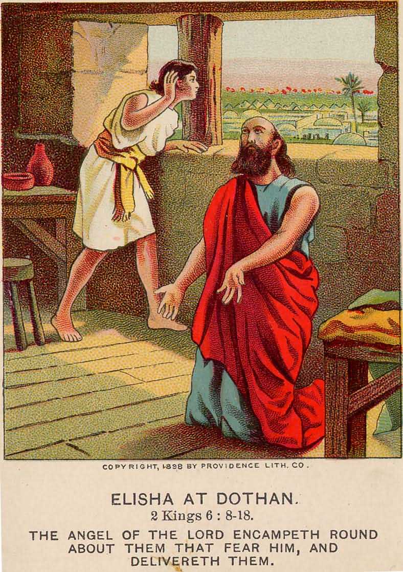Determined to make away with the prophet, the Syrian king commanded, "Go and spy where he is, that I may send and fetch him." The prophet was in Dothan; and, learning this, the king sent thither "horses, and chariots, and a great host: and they came by night, and compassed the city about. And when the servant of the man of God was risen early, and gone forth, behold, an host compassed the city both with horses and chariots."